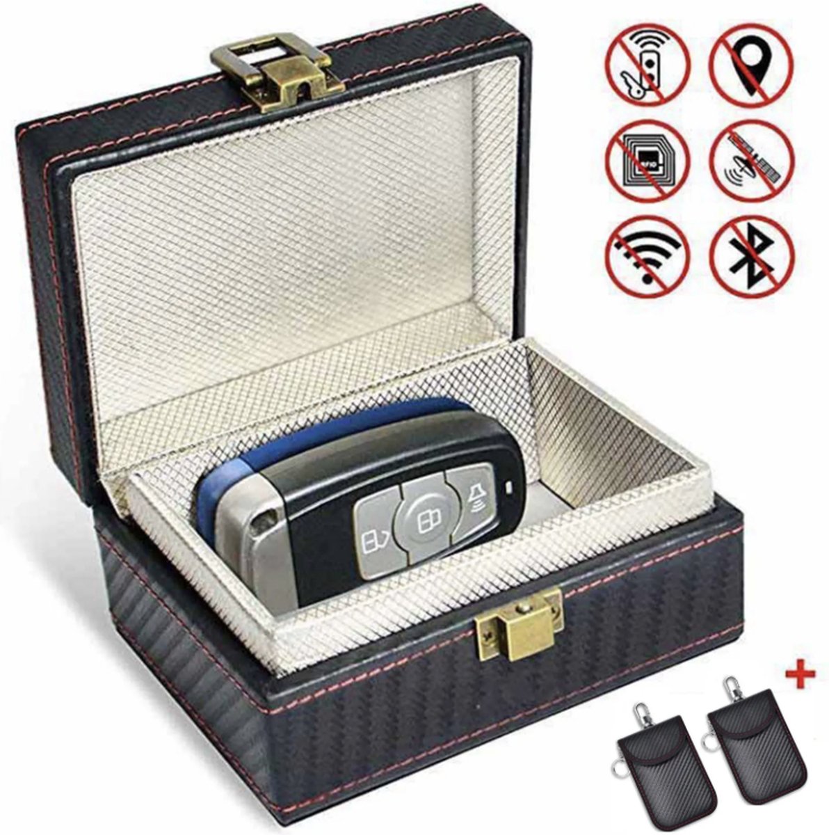 Deze Carbonnen doos blokkeert elk signaal waardoor dieven je autosleutels niet meer kunnen traceren. Door de sleutel in de doos te doen ,worden alle signalen geblokkeerd, waardoor je auto niet gestolen kan worden